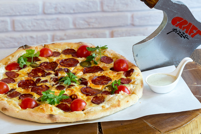 Слово «крафт» в названии — не дань моде. Особенность Craft Pizza в том, что вы можете не только попробовать классическую и самую популярную «Маргариту» и «Пепперони», но и собрать пиццу по собственному рецепту (именно поэтому создатели называют свою сеть «творческой»).