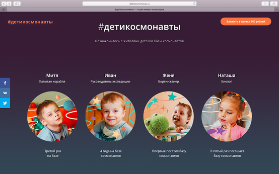 На сайте детикосмонавты.рф висит счётчик, по которому можно следить, сколько инвесторов осталось найти. Он обновляется каждый будний день.